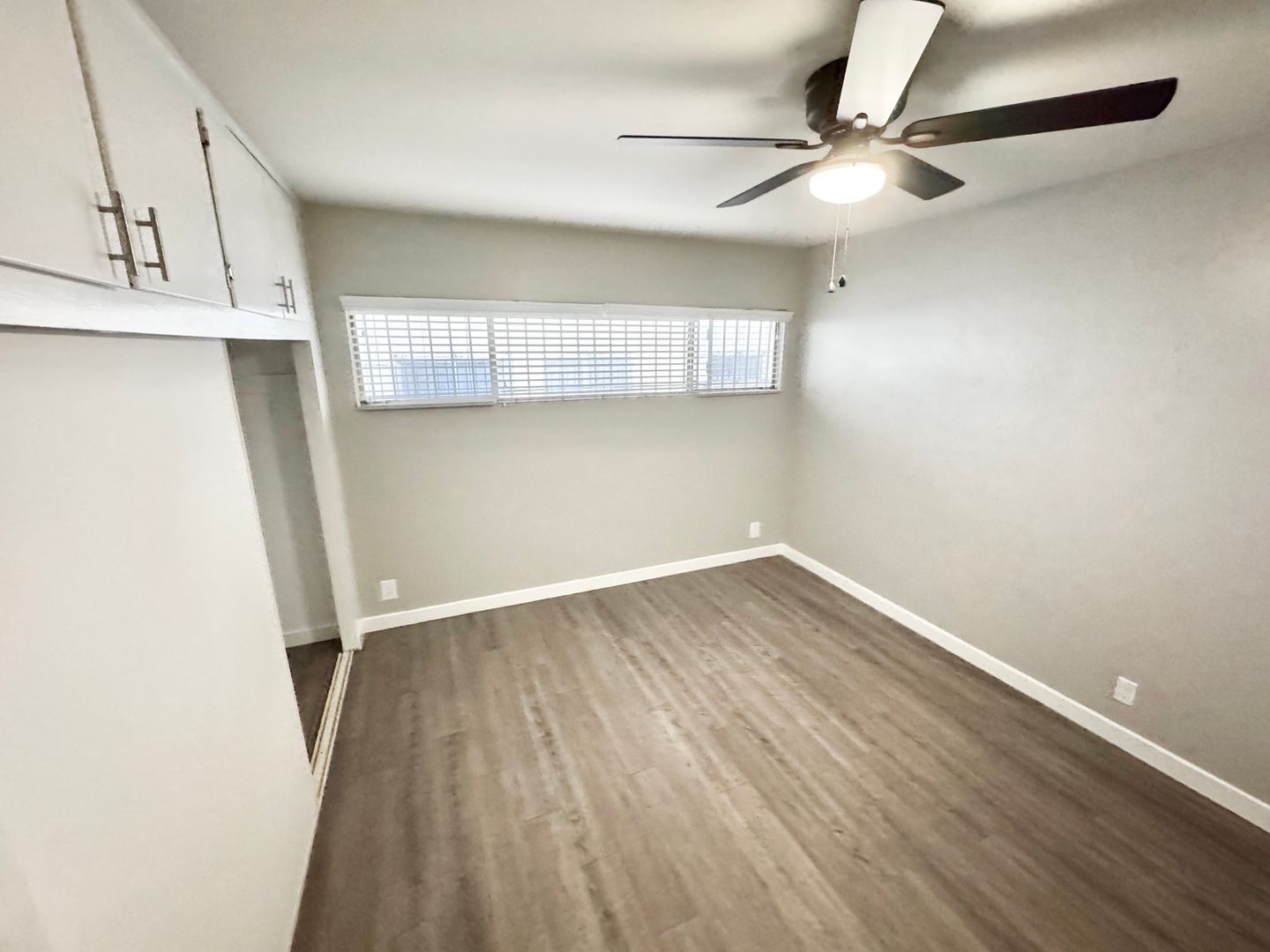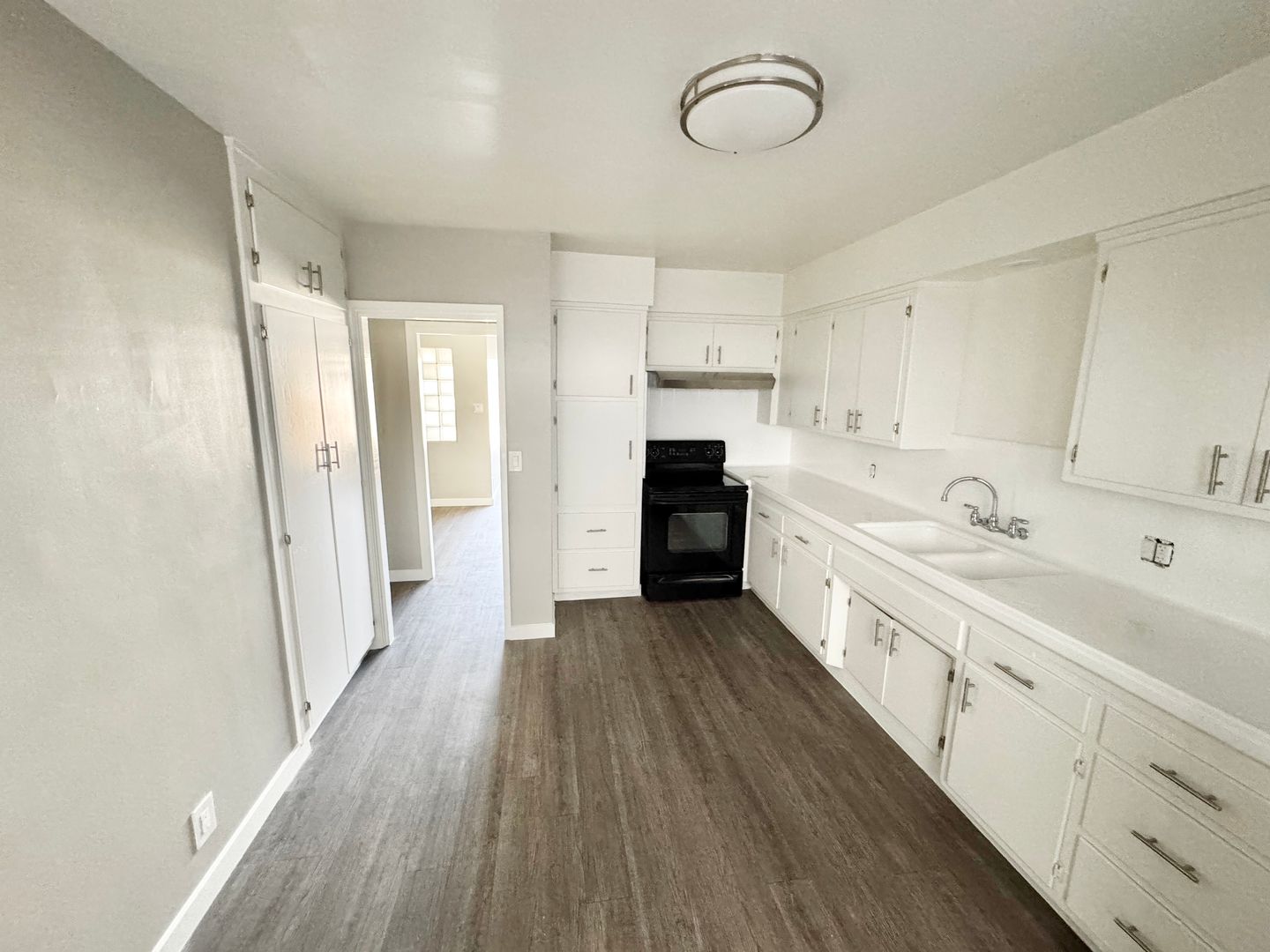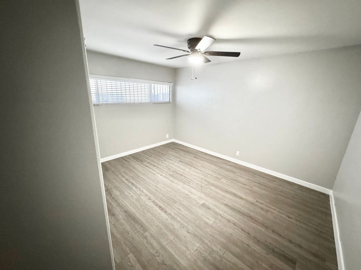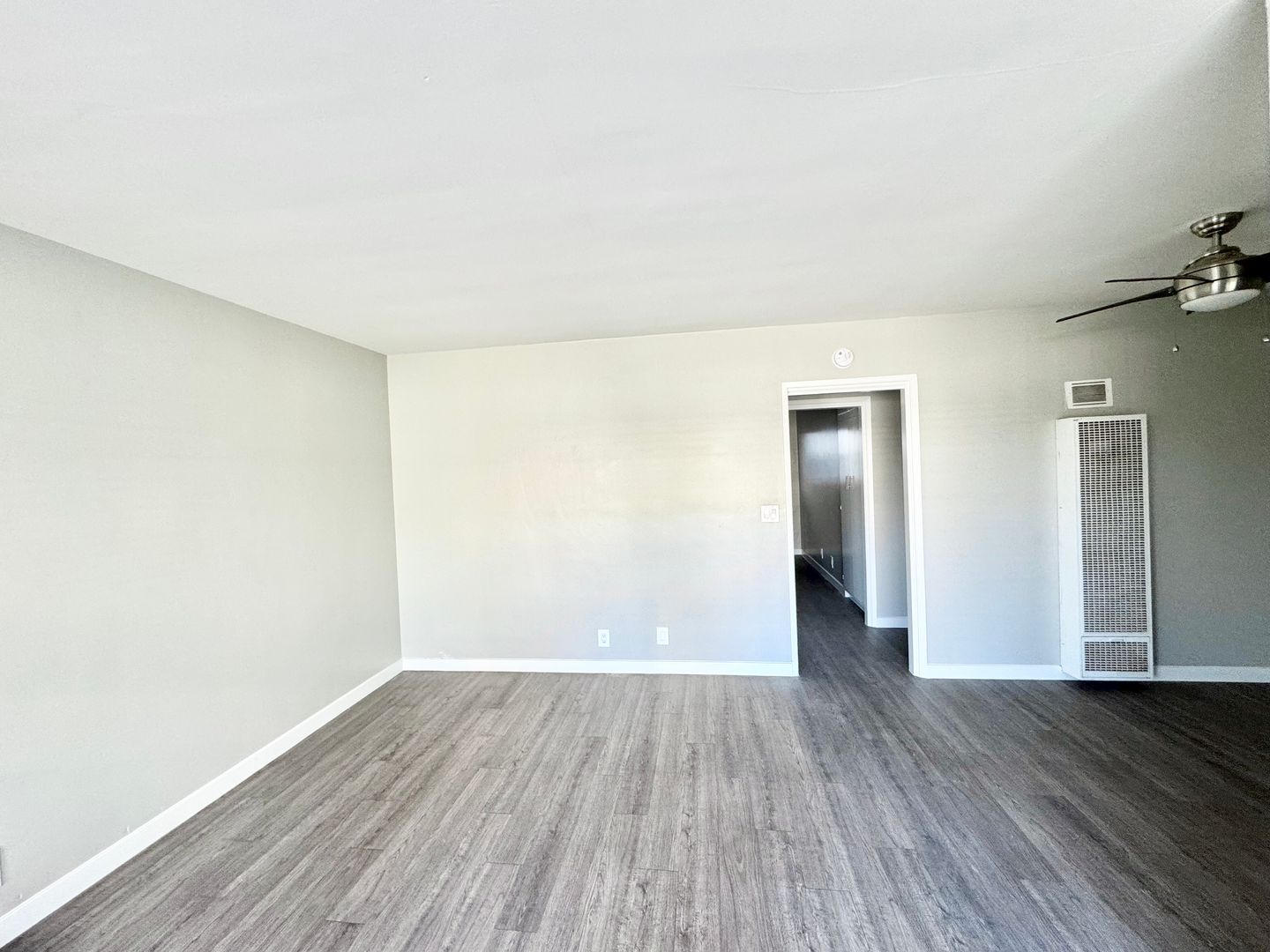 This 1-bed, 1-bath lower unit offers a clean and functional living space. The interior features smooth surface vinyl flooring, fresh paint throughout, and ceiling fans. The unit is equipped with a wall heater and does not have central heating or air conditioning. The kitchen includes an electric stove, freshly painted cabinets, and re-glazed countertops. The bathroom has been updated with a re-glazed tub. A back door provides access to the alley area. Additional features include access to community laundry facilities and a single-car garage space. The unit has been professionally cleaned and is ready to move.