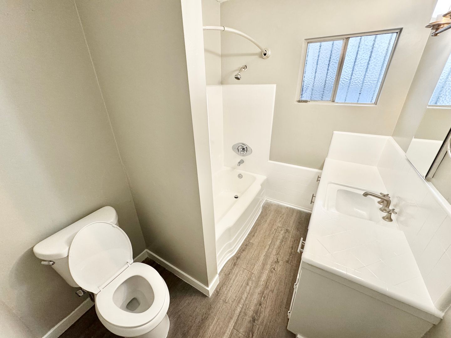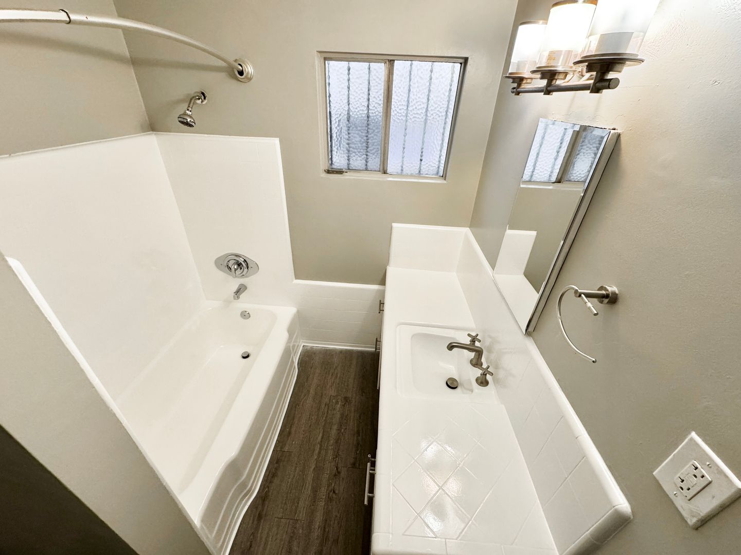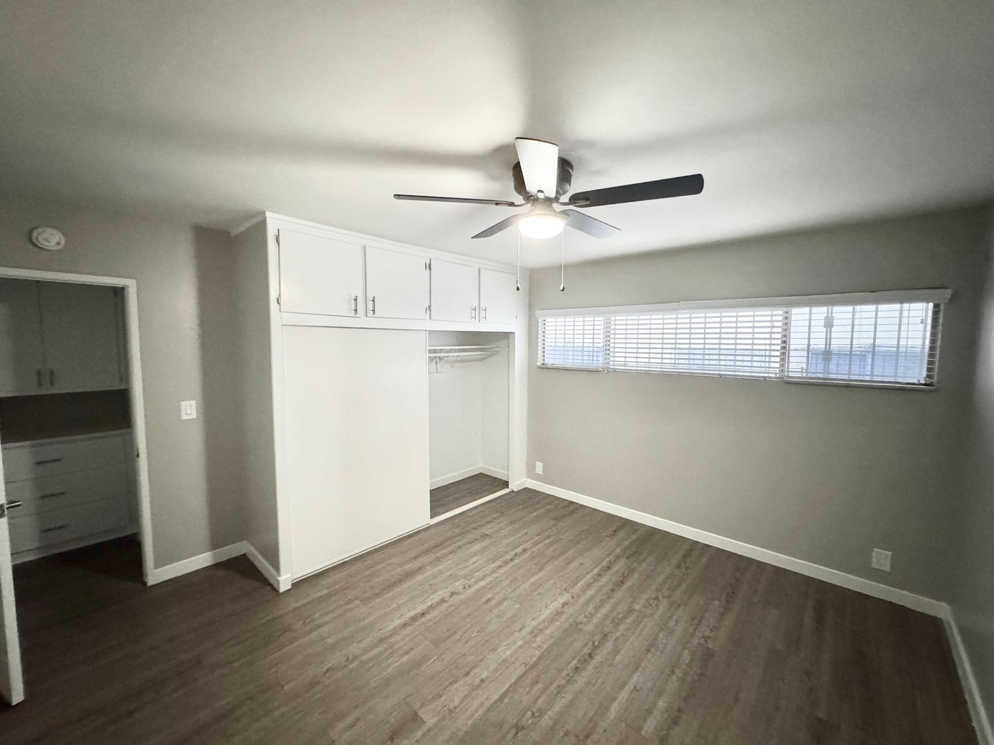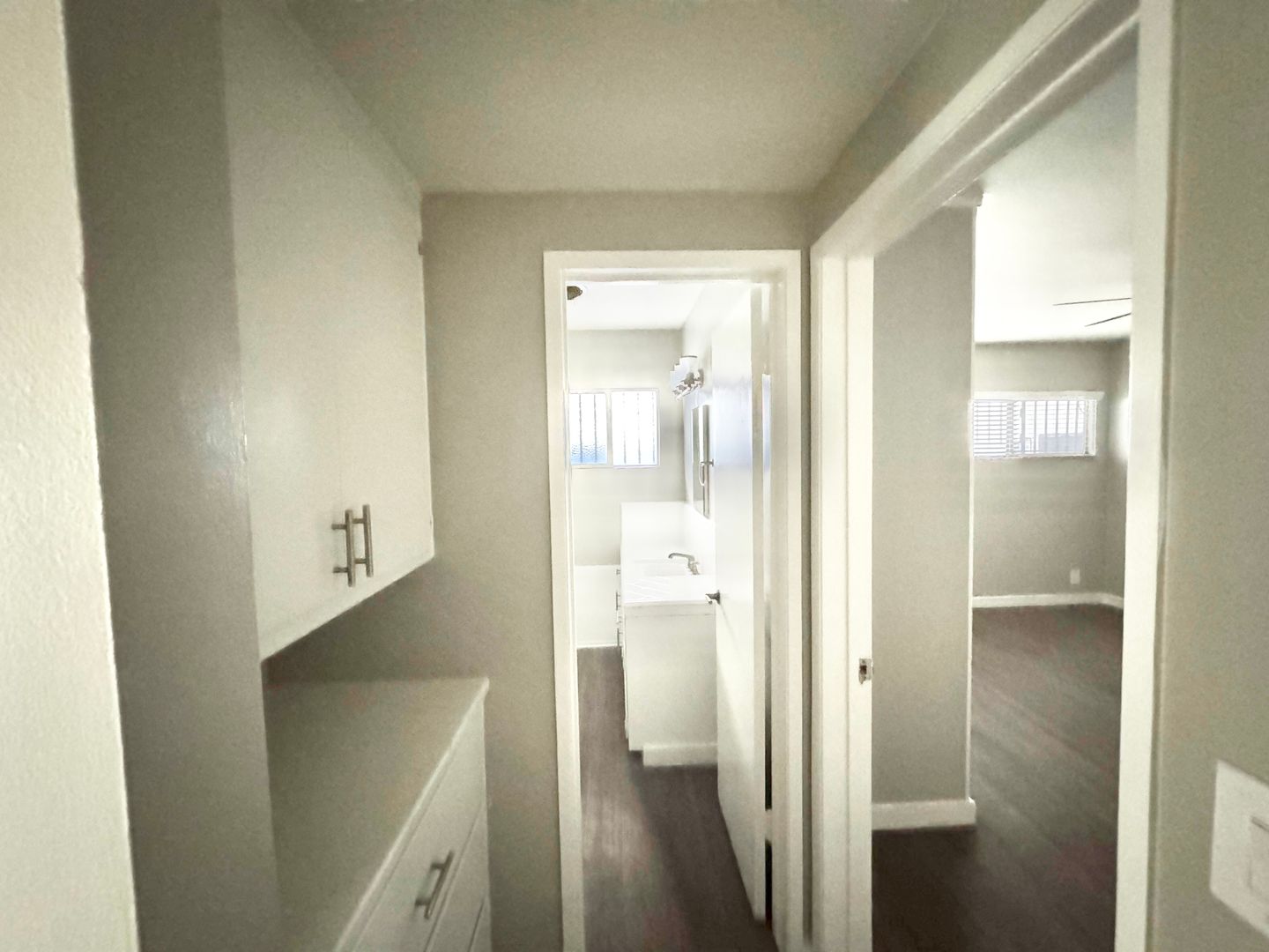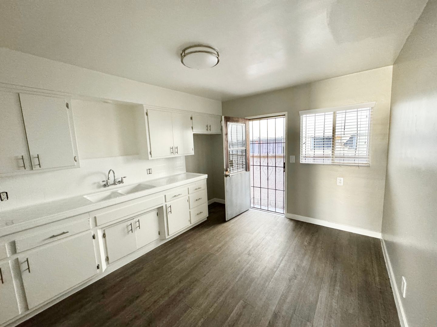 This 1-bed, 1-bath lower unit offers a clean and functional living space. The interior features smooth surface vinyl flooring, fresh paint throughout, and ceiling fans. The unit is equipped with a wall heater and does not have central heating or air conditioning. The kitchen includes an electric stove, freshly painted cabinets, and re-glazed countertops. The bathroom has been updated with a re-glazed tub. A back door provides access to the alley area. Additional features include access to community laundry facilities and a single-car garage space. The unit has been professionally cleaned and is ready to move.