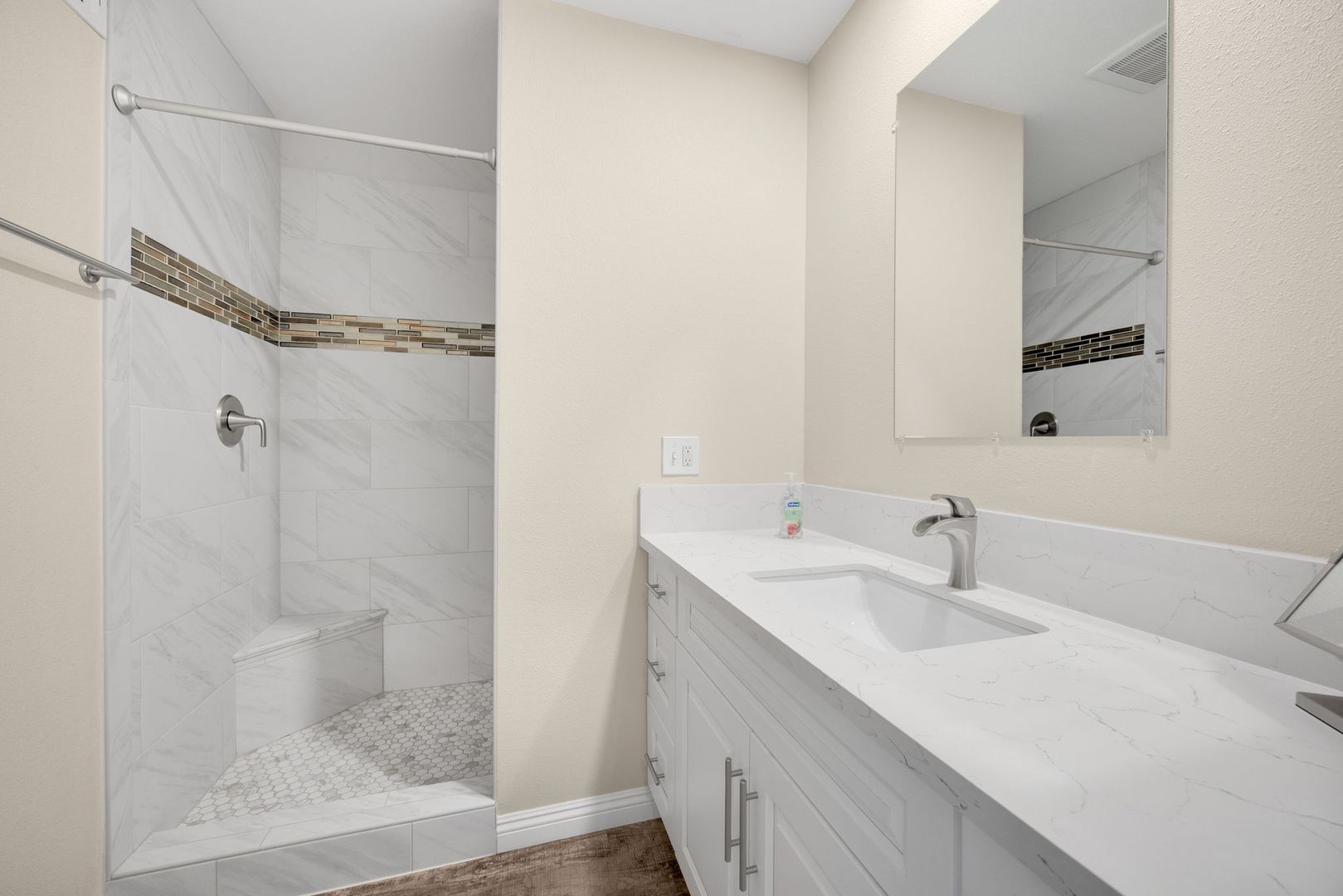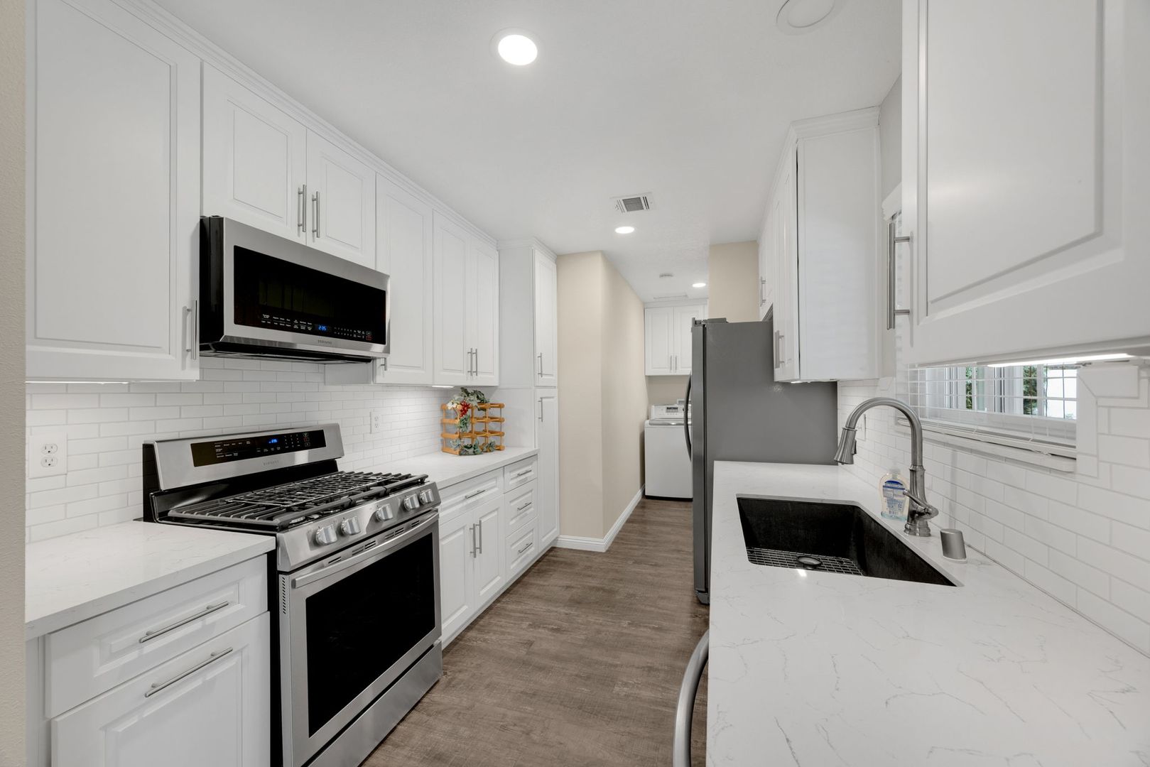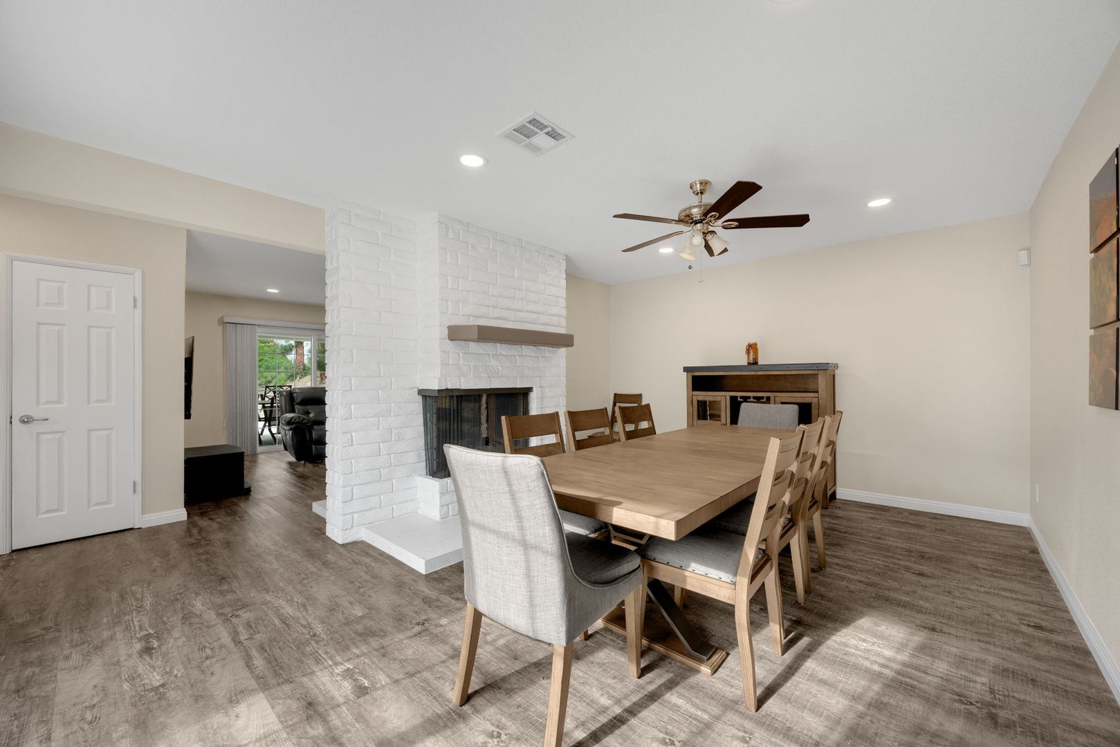 Adorable 4 bed, 2 bath single-family home. Newly updated freshly painted throughout. Smooth surface vinyl flooring. Recessed lighting, ceiling fans, central heating and air. Updated windows, new blinds, furnished living and dining area. Fully functioning kitchen equipped with stone countertops, stainless steel appliances, stove, microwave, dishwasher & refrigerator. Laundry room off of kitchen with extra cabinet space washer & dryer included. Home warranty is on the property paid by owner, tenant is responsible or service fee of $110 on appliance repairs. The master bedroom is fully furnished with a sliding door leading to the backyard area, and two twin beds are located in the second bedroom. 2 car garage with a large backyard with patio furniture. The furnished items are as is and will not be replaced. Tenants are responsible for maintaining and upkeep. Security system provided tenants responsible for set up and payment. Landscaping included. Professionally cleaned and move in ready.