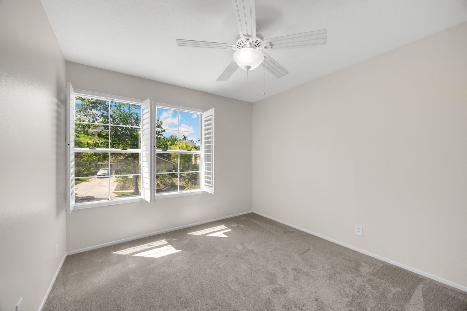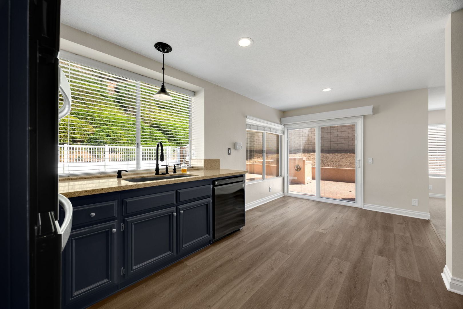 Beautifully remodeled two-story 4 bed / 2.5 bath home featuring a 3-car garage and a range of modern upgrades throughout. Interior includes smooth surface vinyl plank flooring in main living areas, new carpeting on stairs and in bedrooms, and fresh interior paint. The updated kitchen is equipped with stainless steel appliances, including a stove, microwave, oven, and dishwasher. A refrigerator is located in the garage; tenant to provide refrigerator for use inside the kitchen. The property offers tall ceilings, updated windows with wood shutter coverings, ceiling fans, and central heating and air conditioning. Additional features include solar panels, a water softener system, and a Ring video camera system. Plumbing has been fully upgraded with PEX re-piping. Laundry room is located within the home with washer and dryer hookups only. Exterior features include a large backyard with professional landscaping service included. Property has been professionally cleaned and is move-in ready.