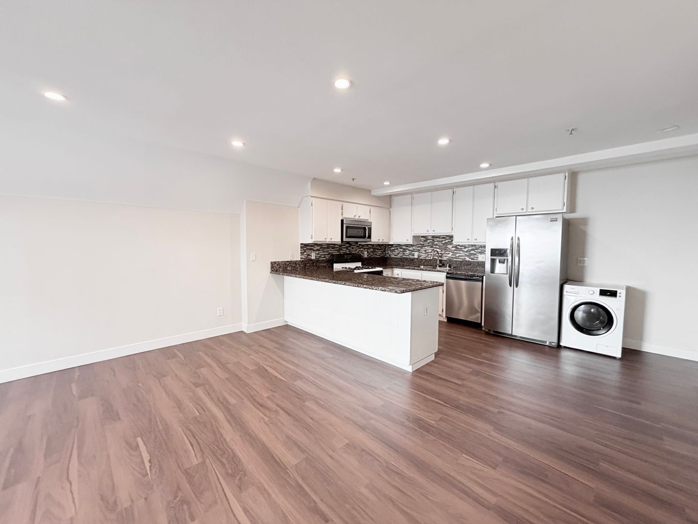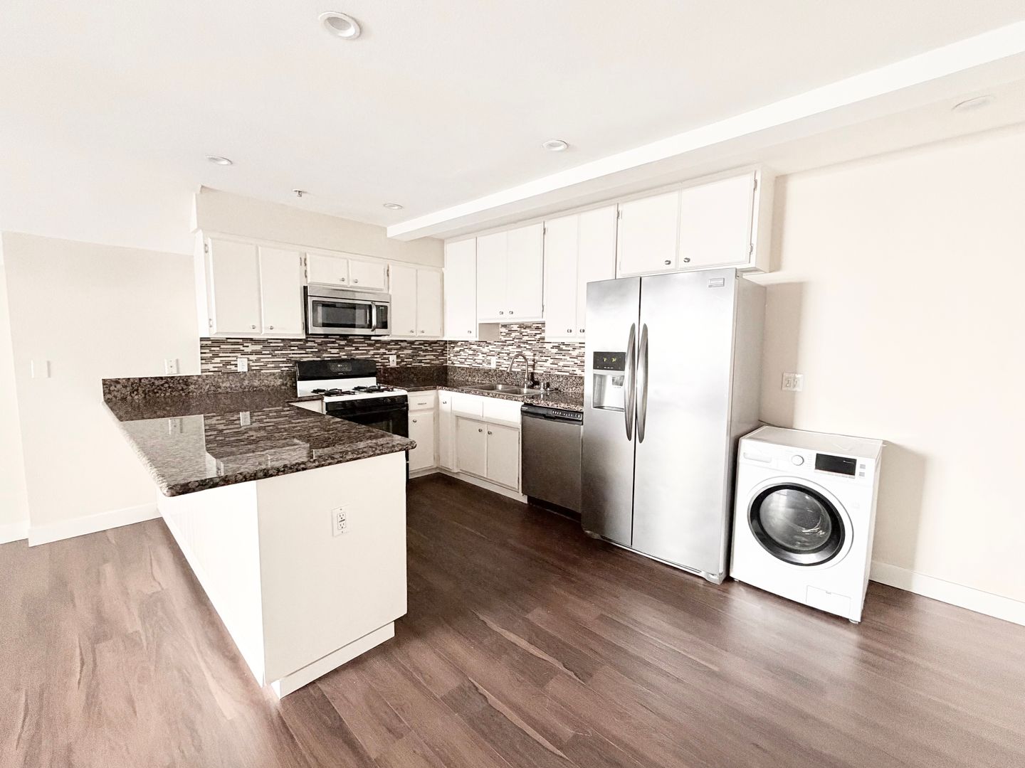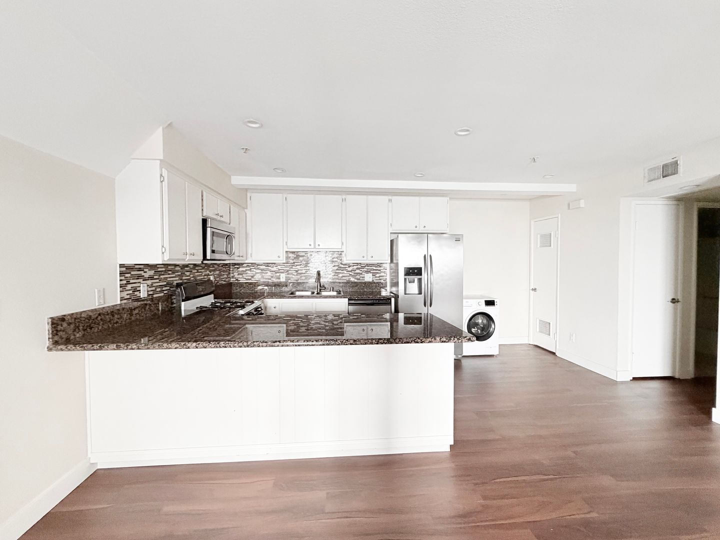 Newly updated downstairs 2-bedroom, 2-bathroom unit located within a HOA community. The interior features smooth surface flooring in the main living areas, fresh paint throughout, recessed lighting, and a spacious layout. The kitchen includes granite countertops, updated white cabinetry, and standard appliances such as a stove, oven, microwave, dishwasher, refrigerator, garbage disposal, and a dual combo washer and dryer located off the kitchen. Both bedrooms offer professionally cleaned carpeting, operable blinds, recessed lighting, and ample closet space. The bathrooms are updated with tile flooring, granite countertops, and modern fixtures. The unit is equipped with central heating and air. Community amenities include a shared laundry room (in addition to in-unit washer/dryer), a gated parking garage with remote access, two covered parking spaces, and a community mail room. Water and trash services are included; tenants are responsible for electricity and gas. The location provides convenient access to Old Town Pasadena, the South Lake Avenue shopping and dining district. Nearby freeway connections include the 110 & 210. The unit has been professionally cleaned and is move in ready.
