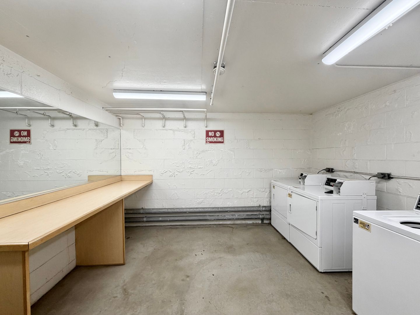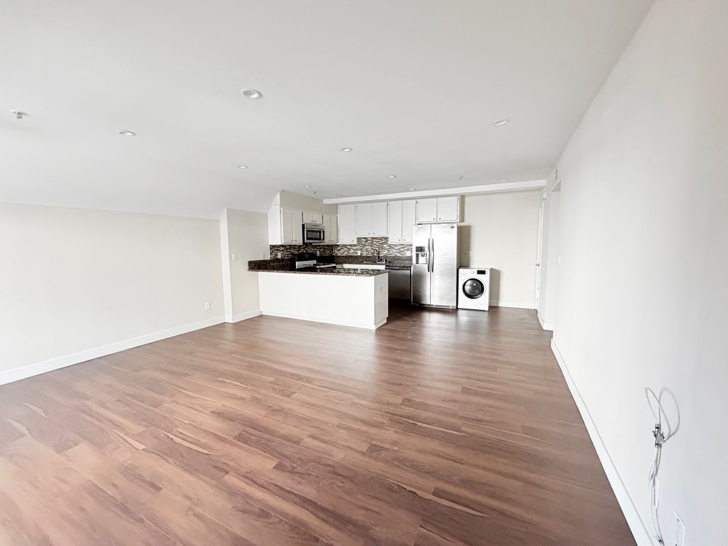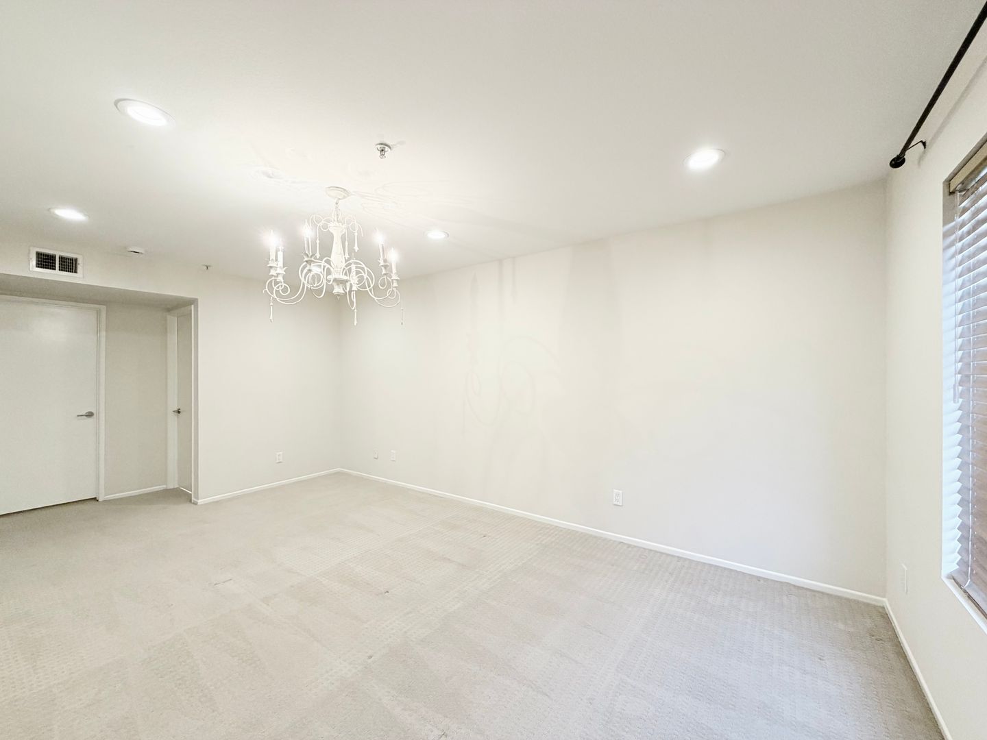 Newly updated downstairs 2-bedroom, 2-bathroom unit located within a HOA community. The interior features smooth surface flooring in the main living areas, fresh paint throughout, recessed lighting, and a spacious layout. The kitchen includes granite countertops, updated white cabinetry, and standard appliances such as a stove, oven, microwave, dishwasher, refrigerator, garbage disposal, and a dual combo washer and dryer located off the kitchen. Both bedrooms offer professionally cleaned carpeting, operable blinds, recessed lighting, and ample closet space. The bathrooms are updated with tile flooring, granite countertops, and modern fixtures. The unit is equipped with central heating and air. Community amenities include a shared laundry room (in addition to in-unit washer/dryer), a gated parking garage with remote access, two covered parking spaces, and a community mail room. Water and trash services are included; tenants are responsible for electricity and gas. The location provides convenient access to Old Town Pasadena, the South Lake Avenue shopping and dining district. Nearby freeway connections include the 110 & 210. The unit has been professionally cleaned and is move in ready.