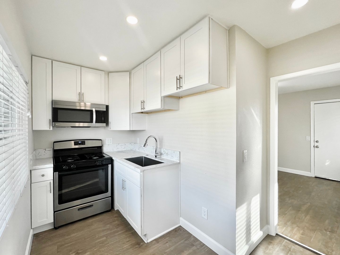 Adorable studio unit located a well maintained 18-unit complex in the prime location close to Downtown Brea. This unit features smooth surface flooring throughout, fresh paint, and upgraded interior finishes. The kitchen comes fully equipped with a stove, microwave, and garbage disposal. The unit has a wall mounted AC unit. On-site parking; single car garage for unit under renovation. Community coin operated laundry room. Tenants are to pay for gas and electricity. Trash and water are included. Landscaper included and pet friendly. The Unit is clean and move- in- ready!