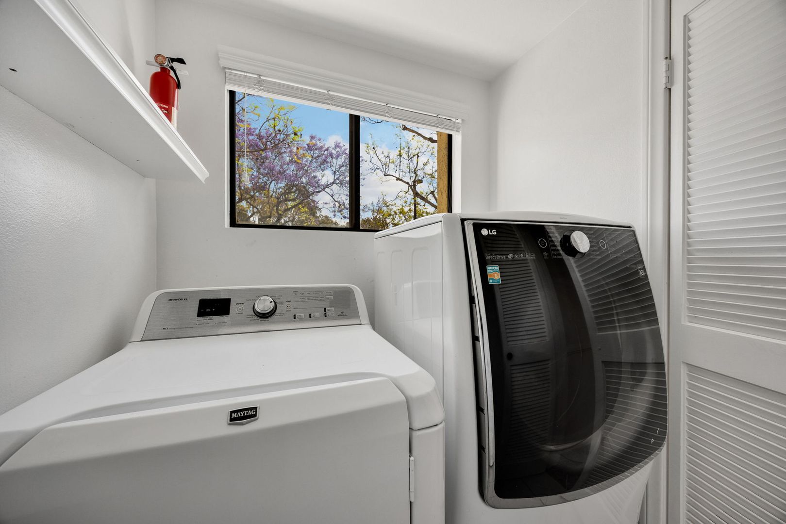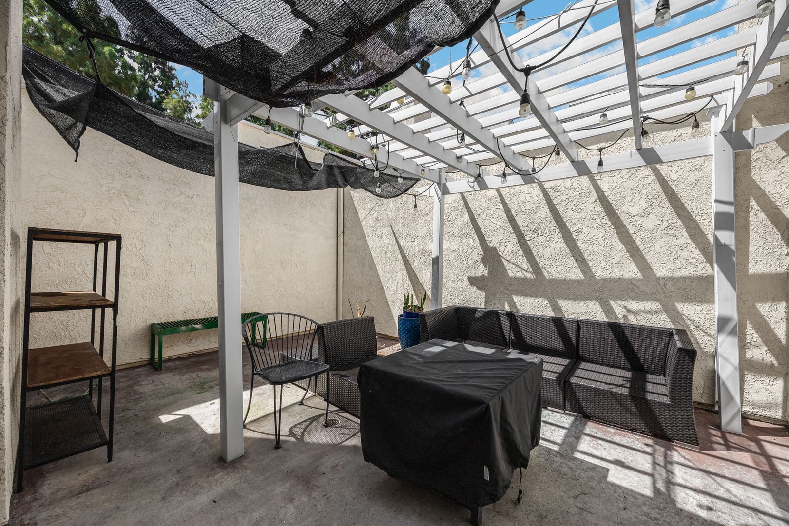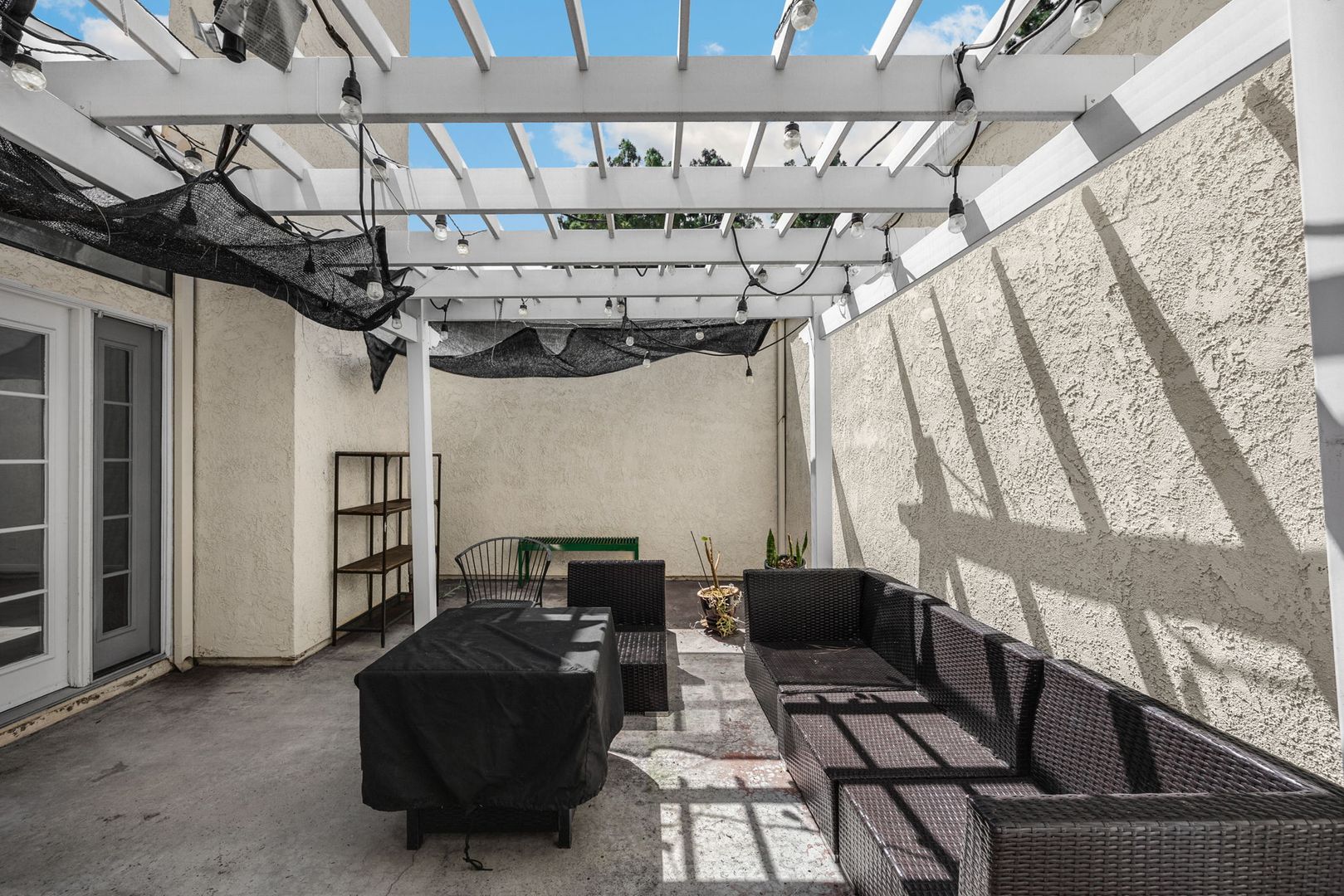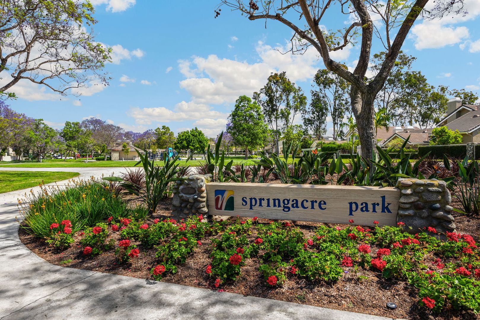 Prestigious Woodbridge Chateaux townhome located within the Woodbridge Villages, directly across the street from the sprawling Springacre Park. HOA amenities include access to the community pool. Freshly Painted throughout. Features 2 bedrooms and 2 bathrooms upstairs, and 1 bedroom/den downstairs with a 1/2 bathroom. Hardwood flooring and tile throughout. Inviting front courtyard and back patio for the gardening enthusiast. High ceilings throughout. Open kitchen with eating area, appliances including refrigerator, oven, microwave, and dishwasher, plus French doors leading to a cozy patio. Dining room is attached to the living room with access to the kitchen. Large laundry room with washer and dryer. No Parking program, tenants must utilize the 2-Car Garage. Tenants are responsible pay all utilities except trash. Trash is paid by HOA. Property has been professionally cleaned and is move-in ready.